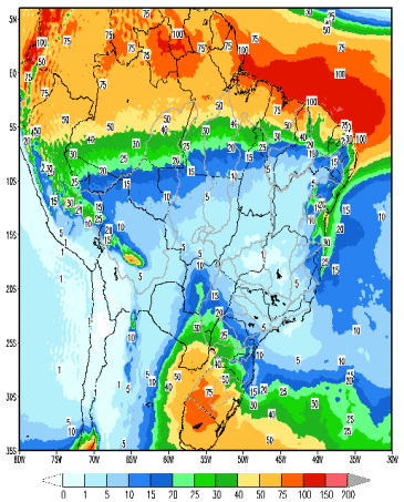 Para a próxima semana, chuva fraca a moderada é esperada nas bacias do Uruguai, Jacuí e Iguaçu. Já na incremental a UHE Itaipu e bacia do Paranapanema, a expectativa é que ocorra apenas chuva fraca. Por sua vez, a região Norte se mantém com pancadas de chuvas nas áreas mais baixas de suas bacias hidrográficas.