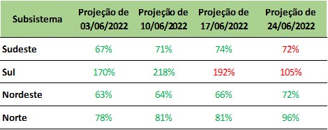 Previsão de Energia Natural Afluente – ENA para junho/2022