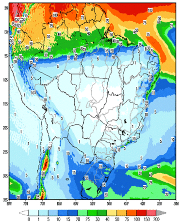 Previsão de precipitação de 25/06/2022 a 01/07/2022