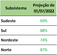 Previsão de níveis de armazenamento para final de julho/2022 (%)