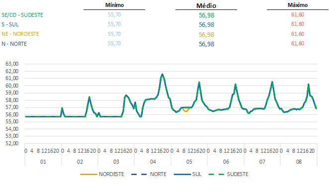 A Câmara de Comercialização de Energia Elétrica – CCEE divulgou o Preço de Liquidação das Diferenças – PLD, o qual depois de alguns meses apresenta um comportamento diferente, sofrendo algumas variações principalmente no período noturno. Os preços em todos os submercados ainda continuam baixos (R$56,98/MWh), mas saem do piso regulatório.
