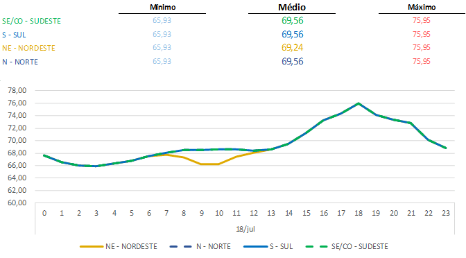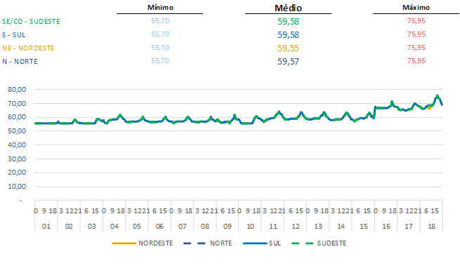 A Câmara de Comercialização de Energia Elétrica – CCEE divulgou o Preço de Liquidação das Diferenças – PLD que segue em constante subida. Para o dia 18, a média está em R$69,56/MWh e o Nordeste por sua vez, indica um leve descolamento mediante os outros submercados (R$69,24/MWh).