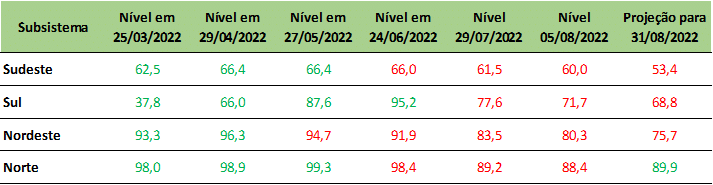 Níveis de armazenamento devem terminar agosto/22 nos melhores níveis desde 2013.