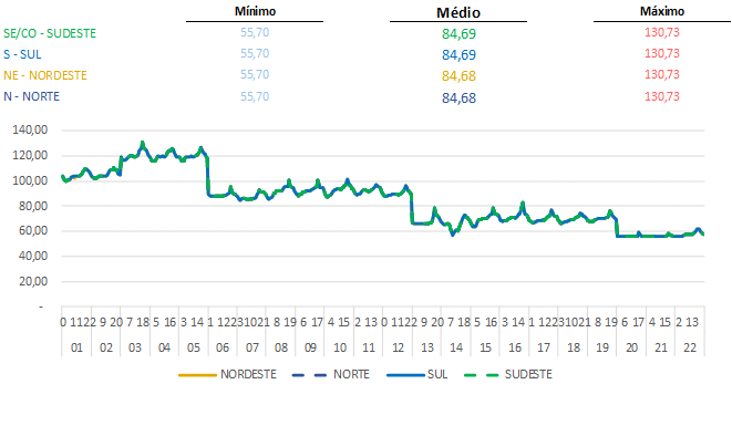 O Preço de Liquidação das Diferenças – PLD foi divulgado pela Câmara de Comercialização de Energia Elétrica – CCEE o qual até a presente data chega aos R$84,69/MWh. O bom volume de chuvas realizado na região Sul do país contribuiu para o aumento nos níveis dos reservatórios favorecendo a queda dos preços.