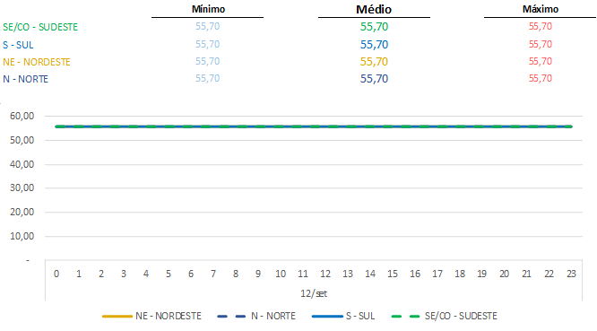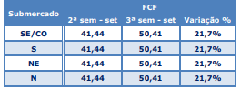 Para a semana em curso, de acordo com a Função de Custo Futuro – FCF, os preços devem se manter no piso regulatório.