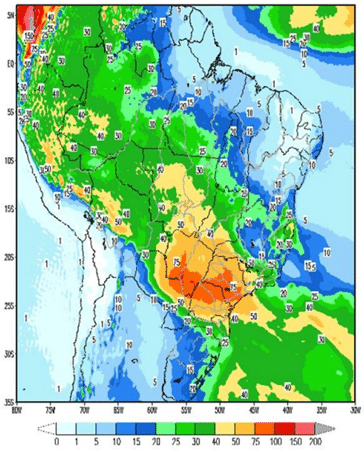 Para essa semana, devido ao avanço de uma frente fria nas regiões Sul e Sudeste/Centro-Oeste, espera-se a ocorrência de chuva moderada nas bacias dos rios Tietê, incremental à UHE Itaipu e Paranapanema e precipitações fracas nas bacias dos rios Uruguai, Jacuí, Grande, Iguaçu, Madeira, Paranaíba e Paraná.
