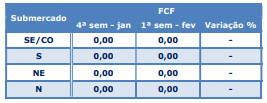 Na última segunda-feira (30), a CCEE também divulgou a Função de Custo Futuro – FCF para a primeira semana operativa de fevereiro a qual aponta preços baixos para todo período (28/01 a 03/02).