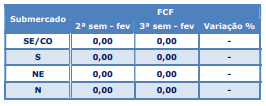Para essa semana (11/02 a 17/02) espera-se preços no piso, uma vez que não houve variação conforme indicado pela Função de Custo Futuro – FCF abaixo.