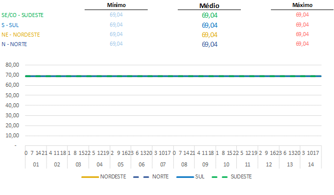 A Câmara de Comercialização de Energia Elétrica – CCEE divulgou o Preço de Liquidação das Diferenças – PLD que mais uma vez seguem baixos (R$/MWh 69,04) em todos os submercados. A manutenção dos níveis dos reservatórios em bons patamares favorece esse cenário.
