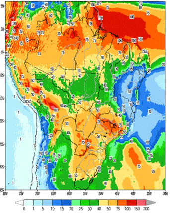 Áreas de instabilidades causam precipitações nas regiões Sudeste/Centro-Oeste, mais precisamente nas bacias dos rios Grande, Tietê, Paranapanema, Paranaíba, na calha principal do Paraná e UHE Três Marias. Afluências também devem ocorrer nas bacias da região Sul e pancadas de chuva serão mantidas na região Norte.