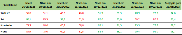 Previsão de níveis de armazenamento para final de fevereiro/2023 (%)