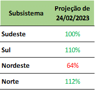 Previsão de níveis de armazenamento para final de março/2023 (%)