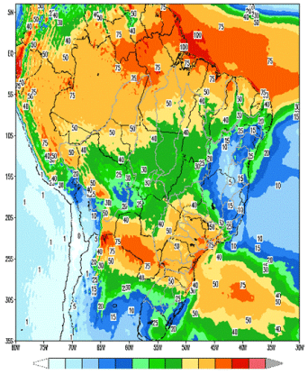 As precipitações devem ocorrer nas bacias dos rios Iguaçu, Tietê, Grande, Paranapanema, Paraná e no trecho da incremental à UHE Itaipu devido a uma frente fria que deve passar pela região Sul, Rio de Janeiro e São Paulo. O Norte do país permanece com pancadas de chuva.