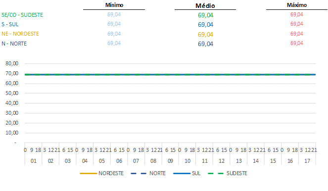 A Câmara de Comercialização de Energia Elétrica – CCEE divulgou o Preço de Liquidação das Diferenças – PLD que mais uma vez segue no piso regulatório (R$/MWh 69,04). Os bons níveis mantidos pelos reservatórios contribuem para a manutenção desse cenário.
