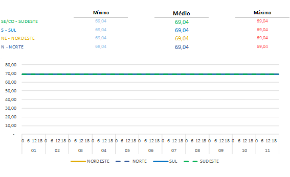Para a semana em curso (08/04 a 14/04), a Função de Custo Futuro – FCF divulgada também pela CCEE informa a manutenção desses preços baixos em todos os submercados, não apresentando variações.