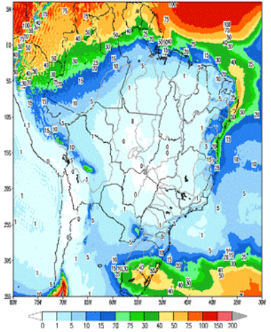A previsão é que as precipitações fiquem restritas apenas a pontos isolados do Uruguai e na bacia do rio Jacuí, havendo uma recessão nas afluências de todos os subsistemas.