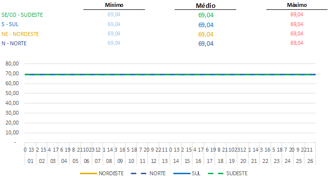 A Função de Custo Futuro – FCF divulgada para essa última semana do mês de junho (24/06 a 30/06) indica mais uma vez a manutenção desses preços baixos em todos os submercados, não apresentando oscilações.