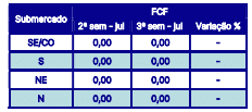 Projeta-se ainda, preços no piso para toda a semana em curso (15/07 a 21/07), conforme indicado pela Função de Custo Futuro – FCF divulgada na última sexta-feira (14) pela CCEE.