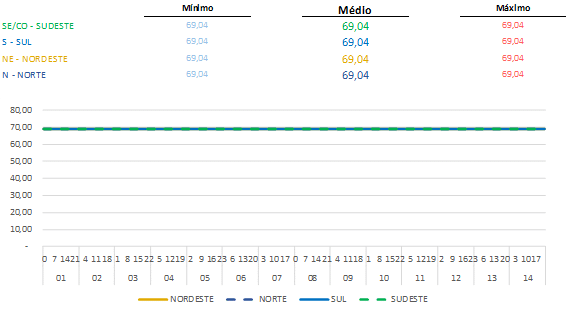 A Câmara de Comercialização de Energia Elétrica – CCEE divulgou o Preço de Liquidação das Diferenças – PLD que continua no piso regulatório (R$/MWh 69,04) em todos os submercados. Os bons níveis mantidos pelos reservatórios contribuem para a manutenção desse cenário positivo.