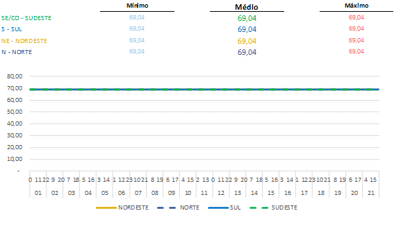 Foi divulgado pela Câmara de Comercialização de Energia Elétrica – CCEE o Preço de Liquidação das Diferenças – PLD que mais uma vez, se mantém no piso regulatório (R$/MWh 69,04) em todos os submercados. Os bons volumes de chuva realizados mantêm este cenário positivo de preços baixos.