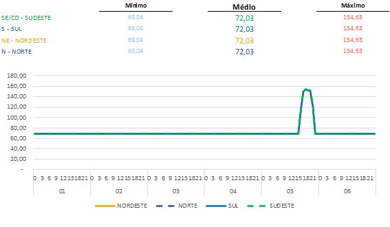 O Preço de Liquidação das Diferenças – PLD, divulgado pela Câmara de Comercialização de Energia Elétrica – CCEE, segue com alteração e chega a R$/MWh 72,03.