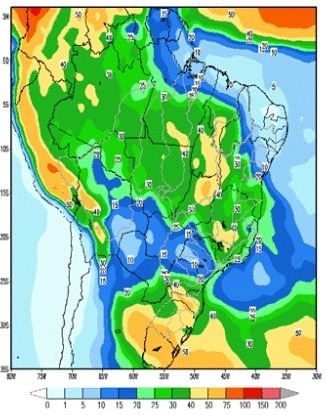 Em nova previsão, estima-se a ocorrência de bons volumes de chuva nas regiões Sul e Sudeste podendo alcançar nessa ordem, 384% e 113% da Média de Longo Termo – MLT.