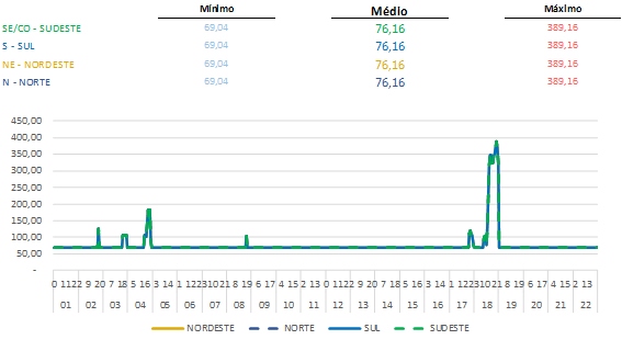 Foi divulgado pela Câmara de Comercialização de Energia Elétrica – CCEE, o Preço de Liquidação das Diferenças – PLD que segue no piso regulatório em todos os submercados (R$/MWh 69,04).