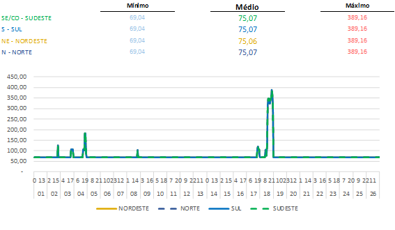 A Câmara de Comercialização de Energia Elétrica – CCEE divulgou o Preço de Liquidação das Diferenças – PLD o qual se mantém no piso regulatório em todos os submercados (R$/MWh 69,04).