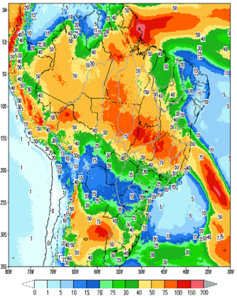 Nessa semana, áreas de instabilidades mantêm a condição de afluências nas bacias dos rios Tocantins, Paranaíba, Xingu, Grande e São Francisco. Chuva fraca também deve ocorrer nas bacias dos rios Uruguai, Iguaçu e Jacuí.