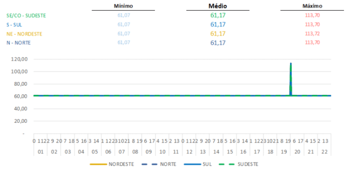 A Câmara de Comercialização de Energia Elétrica – CCEE, divulgou o Preço de Liquidação das Diferenças – PLD que se mantém baixo em todos os submercados (R$/MWh 61,17).