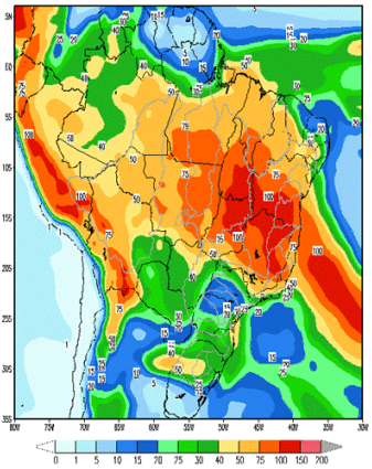 Nessa semana, a passagem de uma frente fria no Sul, Sudeste e Nordeste do país ocasiona precipitações nas bacias dos rios Iguaçu, Uruguai, Paranapanema, na incremental a UHE Itaipu e Jacuí e pancadas de chuva Já nas bacias dos rios São Francisco, Grande, Madeira, Paranaíba, Xingu, Tocantins e Tietê.