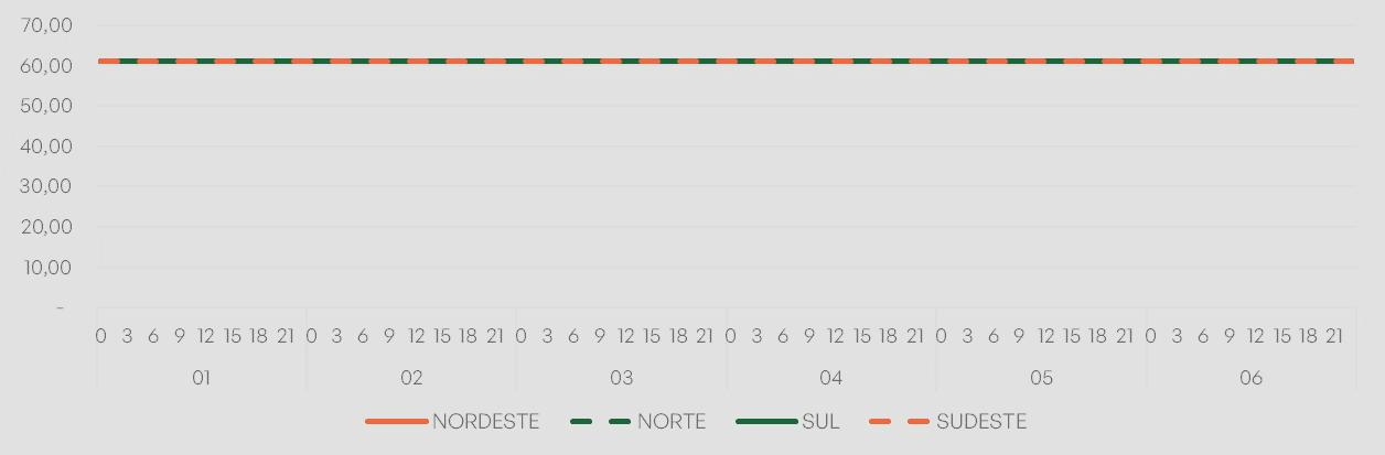 Na última sexta-feira (02), a Função de Custo Futuro – FC também divulgada pela CCEE, indica preços baixos em todos os submercados para a semana em curso (03/02 a 09/02).