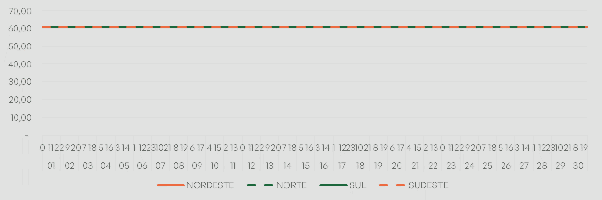 A Câmara de Comercialização de Energia Elétrica – CCEE divulgou o Preço de Liquidação das Diferenças – PLD, o qual vem se mantendo no piso regulatório (R$/MWh 61,07) em todos os submercados.