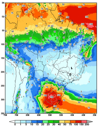 Nessa semana, a passagem de duas frentes frias na região Sul ocasionará precipitações nas bacias dos rios Iguaçu, Uruguai, Jacuí, no trecho incremental a UHE Itaipu e em alguns pontos do Paranapanema. Já no Norte do país e na bacia do rio São Francisco, pancadas de chuva são esperadas.