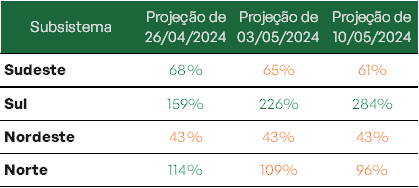 Previsão de níveis de armazenamento para final de maio/2024 (%)