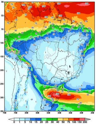 Nessa semana, áreas de instabilidade e o avanço de frente frias no Sul do país causam precipitações nas bacias dos rios Uruguai, Jacuí e Iguaçu.