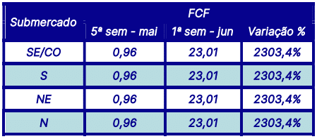 Apesar da alteração apresentada pela Função de Custo Futuro – FCF divulgada pela CCEE na última segunda-feira (03), os preços para a semana em curso continuam baixos em todos os submercados com variações fechando em R$/MWh 23,01, o que pode ser explicado devido a piora das precipitações esperadas para o mês de junho e a atualização nos parâmetros das UHEs.