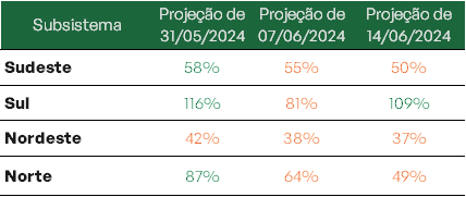 Previsão Mensal de Energia Natural Afluente – ENA para junho/2024