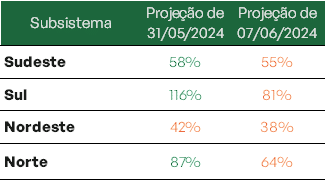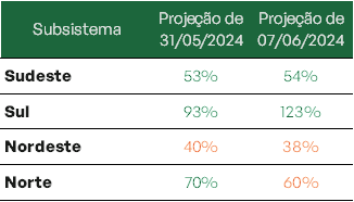 Previsão de níveis de armazenamento para final de junho/2024 (%)