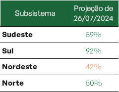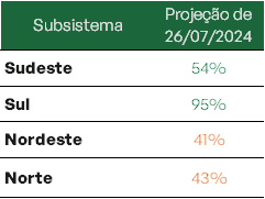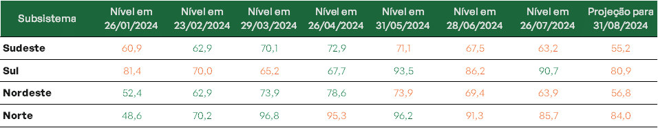 Para agosto projeção é de redução nos níveis de todos os subsistemas.