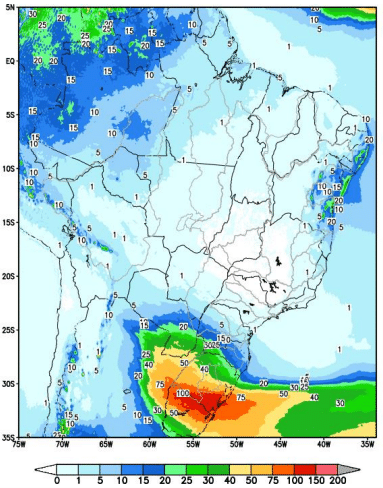 No final dessa semana, a passagem de uma frente fria pela região Sul ocasionará afluências nas bacias dos rios Uruguai, Jacuí, Taquari-Antas, em alguns pontos do Iguaçu e na incremental a UHE Itaipu.