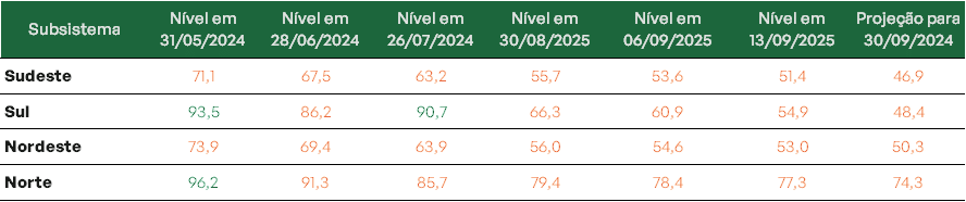 Previsão de níveis de armazenamento para final de setembro/2024 (%)