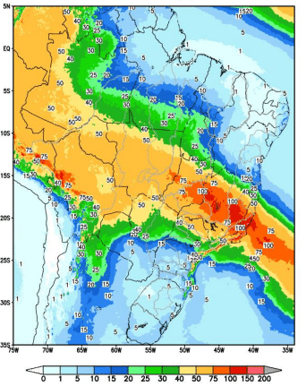 Nessa semana, os principais volumes estão previstos para o Sudeste com possibilidade de alcançar 103% da Média de Longo Termo – MLT. Para as demais regiões, os montantes devem variar entre 51% e 61% da média.