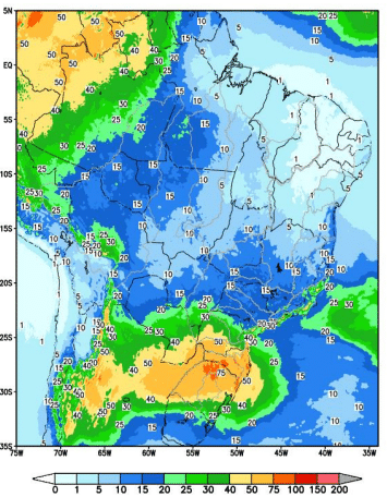 Nessa semana, as precipitações devem ficar concentradas nas bacias dos rios Uruguai, Iguaçu, Jacuí, Tietê, Grande, Paranapanema, no alto do São Francisco, Paranaíba e no trecho incremental a UHE Itaipu devido a áreas de instabilidades nas regiões Sul e Sudeste. No Norte do país deve haver pancadas de chuva.
