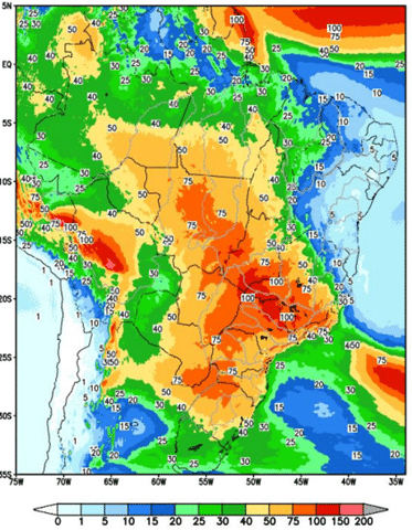 Nessa semana, as afluências devem ocorrer principalmente nas bacias dos rios Tietê, Grande e nas bacias da região Sul devido a passagem de frentes frias tanto no Sul quanto no Sudeste do país. Já nas bacias do Norte, as afluências devem ficar abaixo da média semanal.