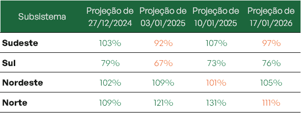 Previsão Mensal de Energia Natural Afluente – ENA para janeiro/2025