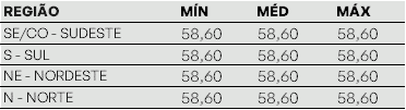 A Câmara de Comercialização de Energia Elétrica – CCEE divulgou o Preço de Liquidação das Diferenças – PLD que permanece no piso regulatório de R$/MWh 58,60 em todos os submercados.