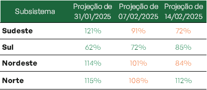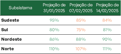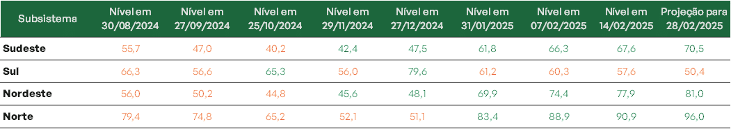 Previsão de níveis de armazenamento para final de fevereiro/2025 (%)