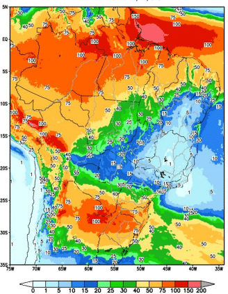 No início dessa semana, uma frente fria no Sul do país combinada com áreas de instabilidade no Centro-Oeste e no Norte, deve resultar em maiores volumes de precipitações nas bacias dos rios Tapajós, Jacuí, Madeira, Xingu e Uruguai.