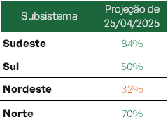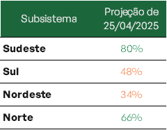 Previsão de níveis de armazenamento para final de maio/2025 (%)